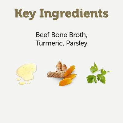 Acompañamiento 100 % natural para el pienso del perro, delicioso caldo de hueso, con hierbas, ideal para animales quisquillosos, sin cereales ni aditivos, para una mayor ingesta de líquido.