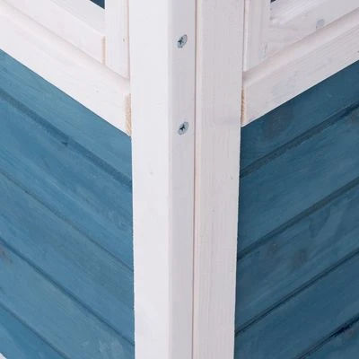 Con esta casita en tonos azules y blancos tu mascota disfrutará de un gran espacio donde relajarse. La casita, ideal para cachorros y gatos pequeños, dispone de tres pisos. La planta baja es perfecta para dormir o esconderse. En la segunda planta, la cual dispone de una barandilla, tu mascota podrá relajarse y estirarse en la zona chill out.
