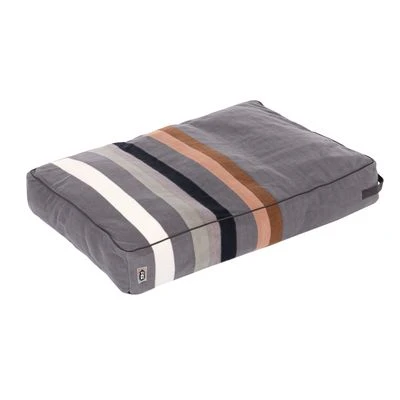 Cojín para perros de tamaño mediano o grande, aísla contra el frío del suelo, detalles de piel sintética, con asa práctica, color: gris con rayas de colores