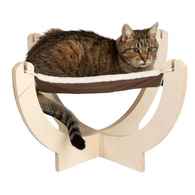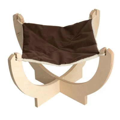 Hamaca grande para gatos y perros pequeños, con estructura robusta de madera, tela reversible con un lado cálido y otro que no deja pasar el agua ni la suciedad, plegable. Color: crema/marrón.