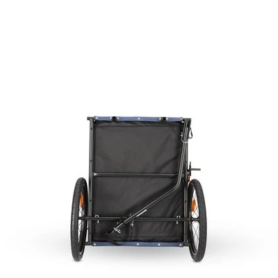 Importante: viajar en un remolque es una experiencia nueva y desconocida para el perro. Por lo tanto, es esencial que se aclimate al remolque y al paseo: solo así podrá tener una experiencia agradable y tranquila. El perro nunca debe ser transportado en un remolque de bicicleta sin ir asegurado. Por favor, utiliza una correa corta en el remolque para evitar que el perro se baje involuntariamente durante la conducción. La rueda trasera de la bicicleta con remolque debe tener neumáticos de 26″ a 29″. Durante el uso como remolque para bicicletas, hay que retirar la rueda delantera. Velocidad máxima de 25 km/h (como remolque) o velocidad de marcha (como jogger).