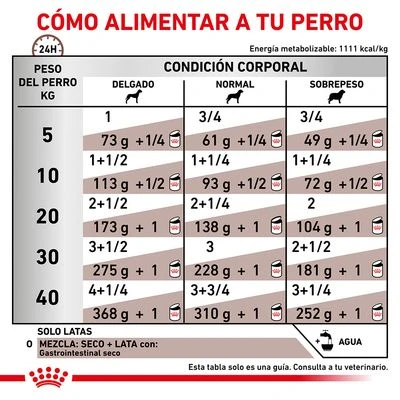 Royal Canin Veterinary Canine Gastro Intestinal es un alimento dietético completo y húmedo para perros creado para favorecer la digestión. Tiene un alto contenido energético y tiene una fórmula con ingredientes de fácil digestión que muchos perros aceptarán fácilmente. La mezcla equilibrada de fibras, incluidos los prebióticos, puede favorecer el funcionamiento normal del intestino y contribuir a una digestión óptima.