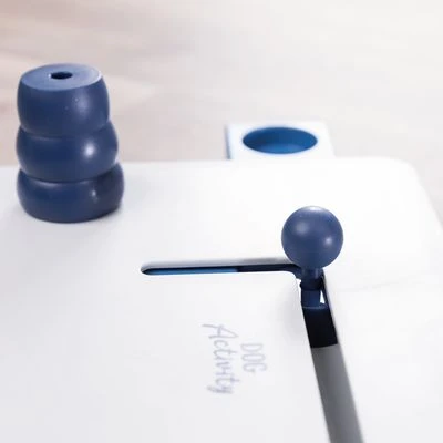 En el interior de los cajones y de los conos puedes esconder snacks; tu perro tendrá que encontrarlos y descubrir cómo conseguirlos. Hay dos maneras de abrir los cajones: tirando de la cuerda o deslizando la palanca. Puedes aumentarla dificultad del juego utilizando los frenos. La parte inferior del tablero de Dog Activity Move2Win dispone de unos tacos de goma antideslizante que impiden que se desplace mientras tu perro trata de conseguir su recompensa.